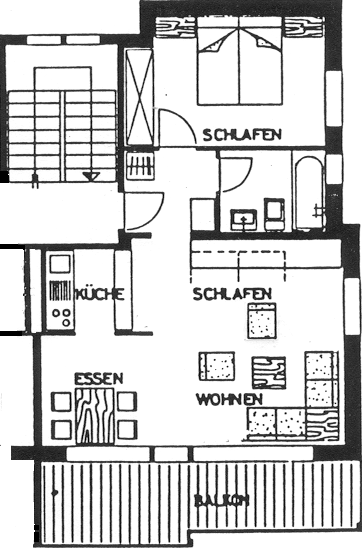 2 1/2 Zimmerwohnung . ca. 52 m², für 2-4 Personen